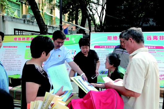 ◥街道各部门在辖区广场开展创建安全社区宣传活动,让更多居民了解参与进来。 本报记者 林媛媛 摄