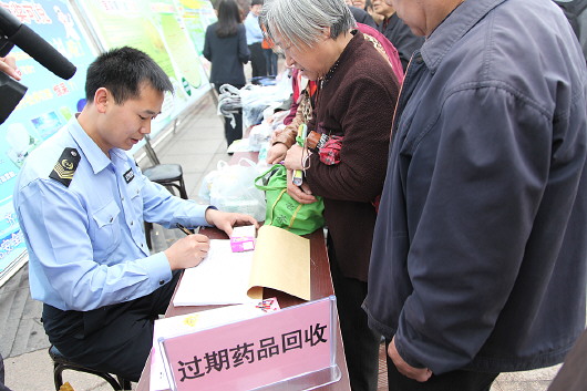 ▲工作人员在社区开展过期药品回收活动。 本报记者 林媛媛 摄