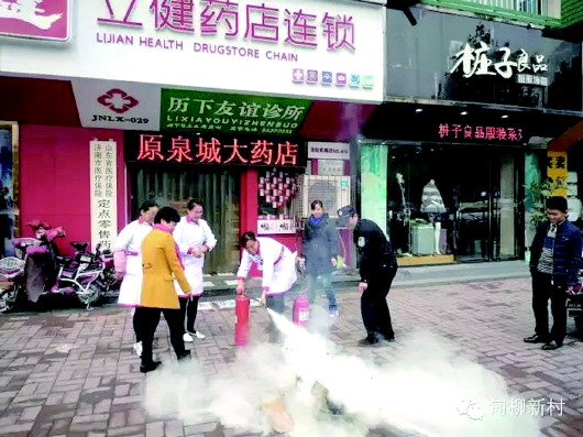 为响应全市号召,在社区内广泛宣传普及消防和火灾自防自救常识,提高社区居民群众防火救灾的整体能力,11月12日下午,吉祥苑居委会联合社区民警在辖区内举行消防安全演练,吉祥苑社区民警牛涛向辖区店铺工作人员演示讲解,实地展示灭火器等消防器材的正确使用方法。通过此次活动,提高了辖区单位的消防安全意识,增强了使用消防器材的能力,消除了安全隐患,为辖区创建安全社区奠定了良好的基础。(本报记者 林媛媛 摄)
