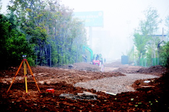 德州第一个“海绵式”带状游园在东风路南侧岔河东大道至康博大道开工建设,15日,在现场工人正进行道路铺设的准备工作。 本报记者 马志勇 摄