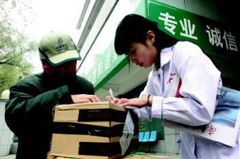 从早上6:30开始,投递部里就开始忙起来,投递员在紧张有序地整理各种包裹、报纸和信件,由于报纸有时效,所以大家都在争分夺秒,力求在最短时间内送到客户手中。“快递安全送到,才能安心。一年365天,不管刮风下雨,每天都不能停。”张伟说。