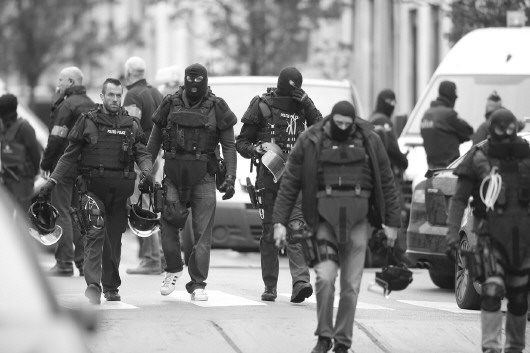 16日,在比利时布鲁塞尔莫伦贝克区,比利时警方对巴黎恐袭嫌疑人的搜捕行动结束。新华社发