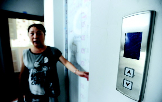 一小区电梯出现故障,上面的数字不再显示。(资料片)