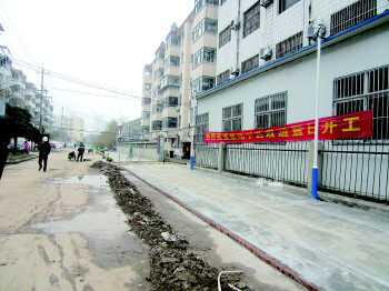 17日上午,记者来到丹阳办事处丹东社区东站小区。该小区整个大门已经架起支架,居民均从南侧一约两米的通道通行。小区里挂上了“热烈祝贺东站小区改造暨日开工”的条幅,小区内部分路面也开始硬化。从尚未动工的主干道路面情况可以看出,该小区道路坑洼不平,刚下过雨的路面更是随处有积水的坑洼。