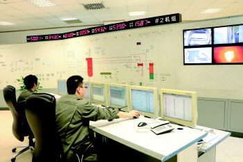 华能电厂工作人员在观察机组运行情况。 本报实习生 杨琳琳 摄
