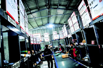记者在圆通速递分拨中心看到,分拨中心里的每名工作人员都在以“加速度”的工作模式工作。