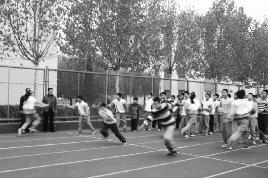 近日,滨城区第四中学举行初一初二年级学生趣味运动会。运动会包括趣味投篮、定点投篮、学生和班主任投沙包、男女生接力赛、足球、花样接力赛等。学生们在游戏中比赛,玩出快乐,玩出健康。整个运动会井然有序,异彩纷呈。操场上一张张笑脸,展现出学生的风采。