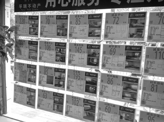 ◥济南和平路一家中介店内,不少房源挂着“学区房”招牌。 本报记者 蒋龙龙 摄