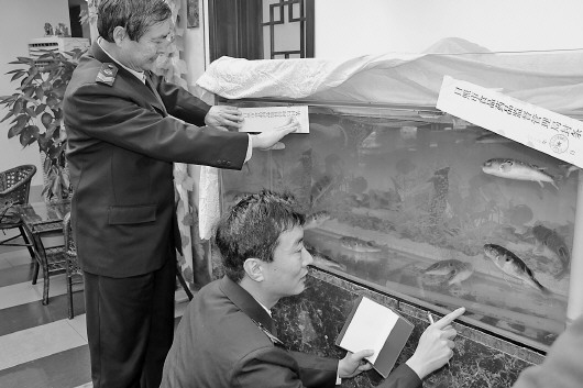 日照食药局执法人员查封贩卖干、鲜河豚以及河豚制品100多件。 本报实习生 杨琳琳 摄