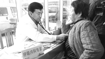 姜鲁宁为一位患者听诊。本报记者 孟杰 摄