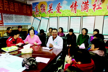 为增进社区中心与居民的沟通了解,永清路社区卫生服务中心主任韩先勇向永青苑40多名居民代表现场公开述职,并由居民代表对中心提出意见建议、进行现场评议。