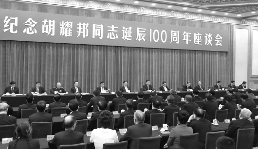11月20日,中共中央在北京人民大会堂举行纪念胡耀邦同志诞辰100周年座谈会。