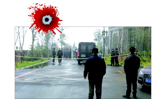 21日上午,发生枪击案的济南中海国际社区A4区5号楼外,警方拉起警戒线。当天清晨,61岁的济南市民王某某先是在天桥区师范路自己家中掐死妻子,后驾车携枪赶赴位于市中区中海国际社区的继子家中,将继子、继子的岳母杀死。之后王某某自杀,遗书中称原因是“家庭矛盾不可调和”。 小图为事发的中海国际社区A4区5号楼外围。 本报记者 李阳 摄