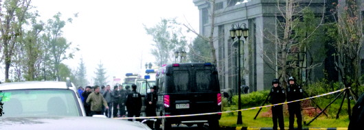 21日上午,事发现场拉起了警戒线。 本报记者 李阳 摄