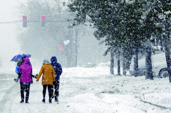 大雪中行走的菏泽市民。 本报记者 邓兴宇 摄