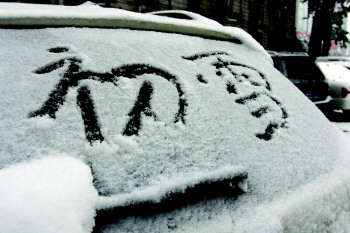 24日,一名市民在车上写下了“初雪”的字样。 本报见习记者 李洋 摄