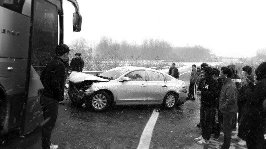本报青岛11月25日讯(记者 潘旭业 通讯员 肖涵) 因雪后路滑,缺乏雪天驾驶经验的女司机张某25日早晨在上高速路口时,错把油门当刹车,一头撞到路中心护栏上,造成交通拥堵。因道路不畅,拖车迟迟无法到达,周边20多名司机和乘客见状,主动帮助交警挪车,上演了爱心一幕。
