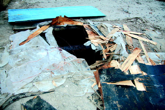 环境执法人员在寿光广汇化工发现的暗坑。 寿光市环保局供图