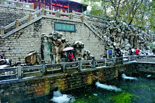 25日下午,鹅毛般雪花逐渐变成了小雪花,降雪逐渐停止。根据济南市气象台的统计,截止到17点,市区降雪量为2.6毫米,为“中雪”量级,全市平均降雪量为2毫米,为“小雪”量级。