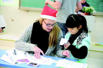 每个年级1到3节课为中方课程,从第4节开始,一直到下午放学,全部为外教课,每位外教都是全科老师。班级中配置中美双方两位班主任进行管理和执教。在四年级1班,外教Trevor Nickel在上课,这里的学生们并不怕老师,而是像模像样地与老师讨论问题。“在美国式课堂上,老师角色不是领袖、不是权威,而是教学活动的组织者、促进者,作为老师的作用就是激发学生的探索兴趣、点燃学生的学习灵感。”Trevor Nickel介绍。