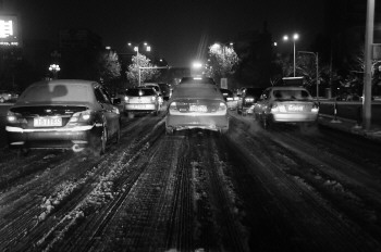 11月25日,市区道路的冰雪没有完全消除,但夜间部分路段道路积雪湿滑,给行车带来安全隐患。 本报记者 马志勇 摄