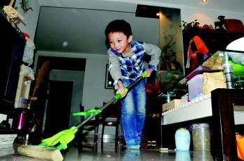 小伙伴胡皓业现在经常帮父母做家务。 本报记者 王鸿哲 摄