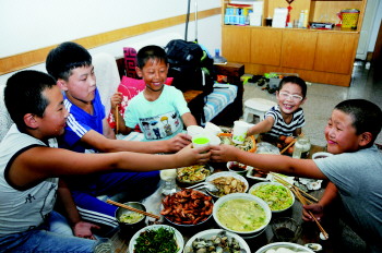 在淄川太河镇的响泉村,城里孩子住到农村孩子家里,农村家庭准备了丰盛的饭菜招待,并且将床铺收拾一新,小伙伴们白天一起活动,晚上一起睡觉聊天,友谊在不知不觉中升温。