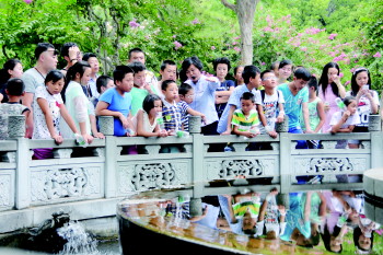参加活动的小伙伴在济南趵突泉景区游玩(资料片)。