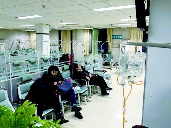 在市中心医院,患者正在输液。 本报记者 王鸿哲 摄