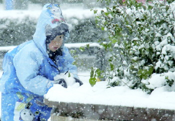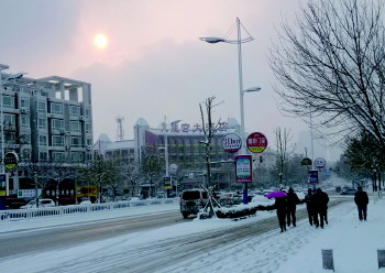 25日下午3点左右,雪势渐小,多日不见的太阳终于露了脸。 本报记者 李璇 摄