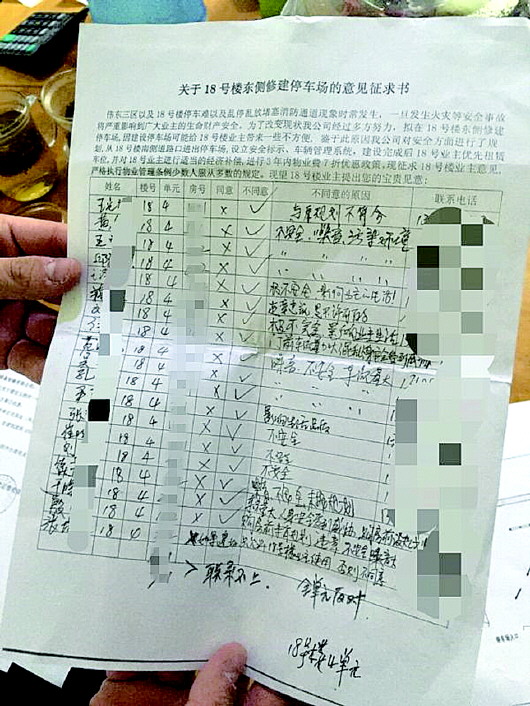 记者看到,18号楼4单元共19户在意见书上签了字,其中18位业主明确表示反对,反对的主要原因包括不安全、噪音、污染,影响业主生活。