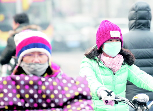 ◥29日,济南雾霾,上街的市民戴上了口罩。