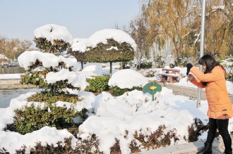 一场雪之后,在新城凤鸣湖公园一种叶色油绿结红果的植物,显得特别漂亮,引得市民驻足拍照。据悉,这种植物叫枸骨,属于冬青科,四季常青,入秋后红果满枝,经冬不凋,它在欧美常用于圣诞节的装饰。 本报记者 袁鹏 摄影报道