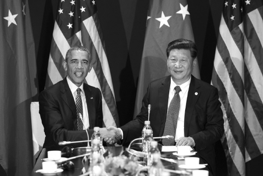 本综合新华社消息 11月30日,国家主席习近平在巴黎会见美国总统奥巴马,就中美关系发展及共同关心的国际和地区问题深入交换意见。习近平强调,当前形势下,中美两国要牢牢把握构建新型大国关系正确方向,坚持不冲突不对抗、相互尊重、合作共赢原则,从双边、地区、全球各个层面推进两国务实交流合作,同时以建设性方式管控分歧和敏感问题,确保两国关系持续健康稳定发展,维护和促进亚太地区乃至世界和平、稳定、繁荣。