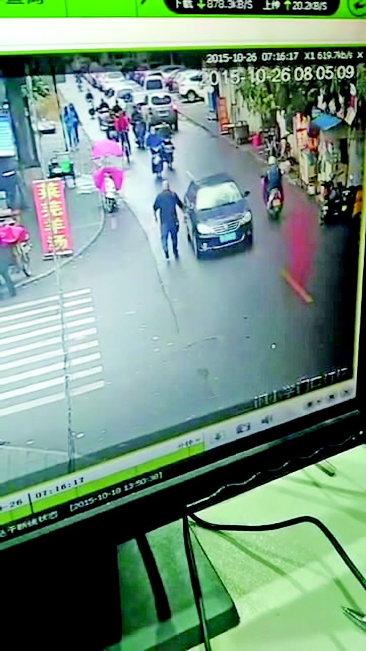 监控显示,在刘先生开车路过二钢小区时,光头男子主动朝刘先生行驶中的黑色轿车靠了上去。当刘先生的黑色轿车经过光头男子身边时,对方右手有一个明显的抬起动作,“也就是说,他很有可能在碰瓷”。