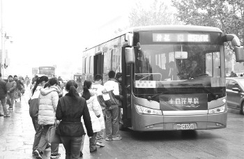 持月票的学生另交钱才能乘坐空调公交车。本报记者 李岩松 摄