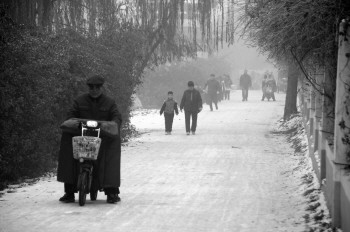 11月30日,降雪已过去多日,但在德开小学外的一条道路已成冰路,接送孩子的家长每次经过都小心翼翼。 本报记者 马志勇 摄