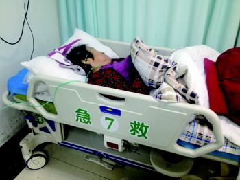 11月30日,老人躺在急救室抢救。 张磊 摄