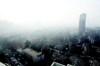 11月30日,市区雾霾严重,能见度较低。 本报记者 杨广帅 摄