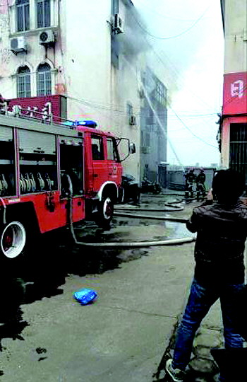 记者观察,这栋沿街楼有四层,起火的是消防器材店铺三楼处一间办公室,“可能是空调处先着的火。”一知情者介绍,当时楼上有数位工作人员,起火后他们开始自发救火,但由于烟雾太大,小的消防器材已经很难起作用。“当时烟很大,整栋楼都被烟笼罩着。”附近一商户老板说。