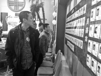 ▲联谊会结束,嘉宾们仍驻足在资料墙前继续寻找心上人。