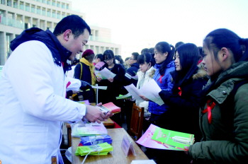 市疾控工作人员走进大学校园宣传防艾知识。 本报通讯员 曹铮 摄