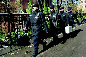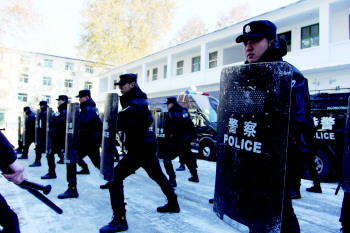 11月26日,6时50分,市公安局特警支队的特警队员们已开始了大约4公里的跑操,之后整理完毕之后,就要开始一天的工作了。8时20分全体集合,紧接着开始了一天的执勤工作。