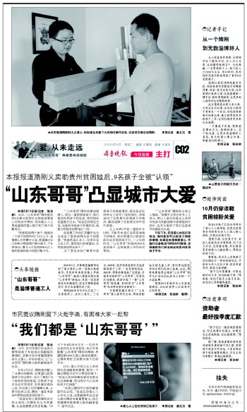“‘山东哥哥’隋刚的义举让人感动,”淄博市文明办有关人士表示,更让人高兴的是这么多的市民参与到救助贵州贫困娃的行动中,这充分体现了我们这座城市的善良与大爱。