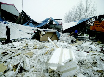 大雪压塌厂房钢棚 一村四五家板厂受灾