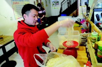 12月1日上午,“85后”夫妻创业者杨斌和李小聪正在店内忙碌。他们俩一个是敦厚帅气的淄博小伙儿,一个是火辣热情的四川幺妹儿,梦想从一碗牛肉面开始,也从一碗面展开。虽然很平凡,但日子充实快乐。刷刷锅、洗洗碗、买买菜、打扫打扫卫生、时常斗斗嘴,平凡的背后是实实在在的努力。亚里士多德说:“幸福属于满足的人们。”在快节奏的生活下,我们都应时刻保持对生活的信心和努力。 本报记者 王鸿哲 摄影报道