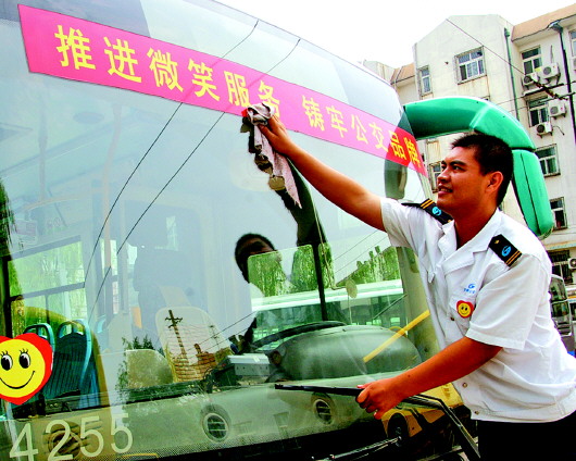 为了更好地进行微笑服务,陈大伟利用休息时间跑遍了火车站、汽车站、三联、苏宁等服务场所,向工作人员请教微笑服务的技巧,再回到家对着镜子反复练习。在工作中他深深体会到,只要微笑是真诚的,就会打动乘客。他平时经常利用业余时间去记线路、看站点,掌握市区主要线路的走向及换乘,当有乘客询问时,做到有问必答。他还主动带领车队同事学习微笑服务技巧、英语哑语会话。