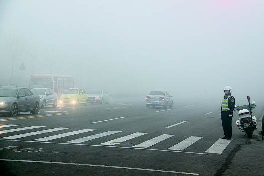 雨雪雾天交警保安全