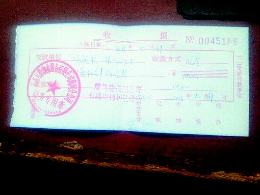 冯先生告诉记者,他是在泰和名都买的三期的房子。开发商在10月22日打电话通知他10月23日交房,在此之前需要缴纳各项费用共计6766元,其中包含1150元的天然气配套安装费。