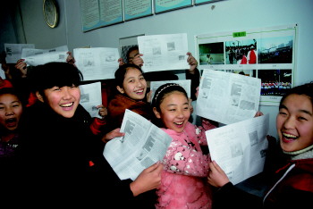 近日,地处乡下农村的山东省青州市郑母初中八年级学生在心理咨询课堂上展示各自的心理健康教育简报阅读情况。近年来,青州市教育局对辖区各大中小学校通过普及开设心理咨询课、定期开展“一对一”心理辅导等形式,对广大学生开展专业化、规范化和系统化的心理健康教育,促进了当地青少年身心健康发展。 记者 王庆和 摄